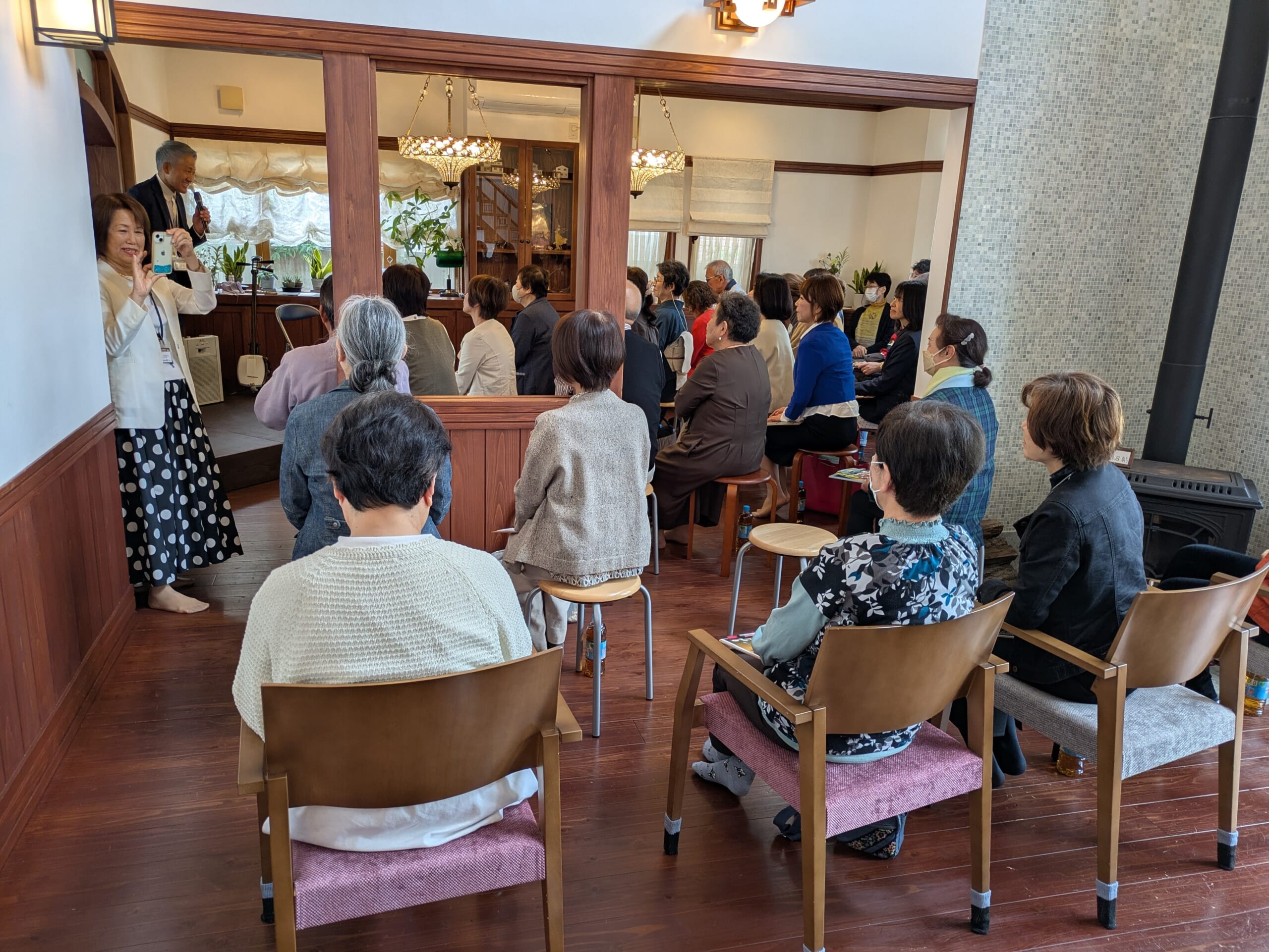 一つのショールームのリビングに40名以上の方がゆったり座れるのも凄いのですが木の温もりに天然リバーブで素晴らしい音響でした。